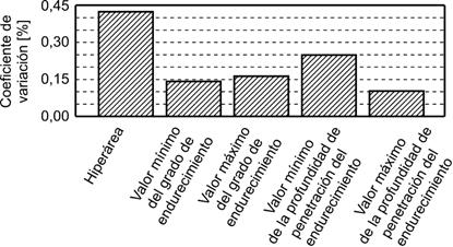 Tras el tratamiento, los valores de dureza no alcanzan un valor uniforme, sino que los mismos van variando en función de la profundidad, figura 2.