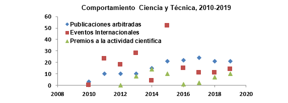 Publicaciones científicas, premios e importantes resultados han sido a largo de los años, características identitarias del quehacer de los profesores de la carrera de Ingeniería Mecánica. El Fórum Nacional de Ciencia y Técnica y el Ministerio de Ciencia, Tecnología y Medio Ambiente han premiado y reconocido en innumerables ocasiones esta abnegada tarea. En la figura 3 se puede apreciar la progresión de algunos de los elementos calificadores de la actividad científica.