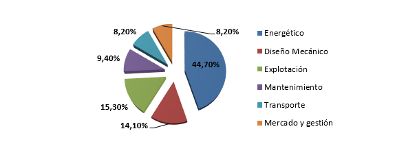 De acuerdo con el análisis de la figura 2. Se puede apreciar que los conocimientos que más ponderan los empleadores son los energéticos, el diseño y la explotación de los sistemas mecánicos, por ese orden. Los elementos de Gestión, Transporte y Mantenimiento son los de menor índice de conformidad de los empleadores analizados. Estos resultados posibilitan brindar un enfoque con mayor atención respecto a estas temáticas para buscar solución a los problemas más frecuentes que se dan en las industrias.