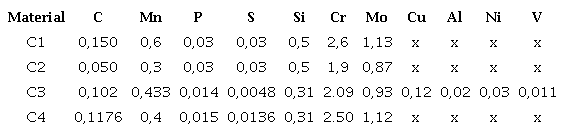En la literatura consultada pudo apreciarse que existe una gran variabilidad en la composición de este acero. La tabla 1 muestra las cuatro composiciones estudiadas que fueron seleccionadas aleatoriamente con el fin de determinar las propiedades y comportamiento mediante modelación y comparar estos resultados con aquellos alcanzados experimentalmente y que se encuentran presentados de manera muy dispersa en la bibliografía estudiada.