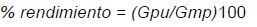 El rendimiento se calculó mediante la ecuación (1)[13].