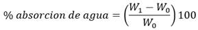 La prueba de absorción de agua se basa en el cálculo de la diferencia entre el pesaje inicial y el final luego de haber sometido a la muestra a sumergirse en agua por tiempo determinado. Esta diferencia es calculada por la ecuación (2):
