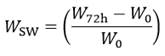 (3)Para calcular el índice de hinchamiento o swelling pesamos la muestra seca y la sometemos, por un tiempo de 72 horas, a estar inmersa en la solución a 37 ºC de temperatura, se pesa y se calcula el índice de hinchamiento por la ecuación (4):