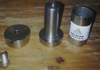 (1)Para obtener los andamios se realizó un proceso de liofilización, utilizando moldes cuyo prototipo se presenta en la figura 2. Estos poseen un diámetro de 20 mm entre las paredes exteriores, un núcleo también metálico y una altura de 50 mm. La holgura entre el núcleo y la camisa se fijó en los valores de 0,1; 0,5 y 1 mm.