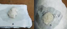(5)Se obtuvieron dos muestras de colágeno, una de la piel de cerdo y la otra de las patas de pollo, como se muestra en las figura 4 a y b.