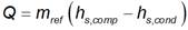 mref, hs,compy hs,condson el flujo, entalpía a la salida de compresor y la entalpía a la salida del condensador, respectivamente, del refrigerante.Atendiendo a los valores dados de las temperaturas del refrigerante en la descarga del compresor y de condensación, el calor de sobrecalentamiento del vapor representa el 9 % del total entregado en la condensación, por lo que podría recuperarse por esta vía la cantidad de 45 kW.