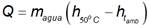 Puede asumirse precalentar el agua hasta 50 ºC, a partir de agua a temperatura ambiente de 25 ºC, lo que devuelve el resultado de 1546 kg/h. Para obtener este resultado se empleó la ecuación (2)[5]