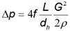 La inclusión del recuperador también incorpora caída de presión en el sistema, la cual debe ser vencida por el compresor, lo que se traduce en mayor consumo energético. Para el cálculo de la caída de presión puede emplearse la ecuación (4)[9] y el modelo de Martin para la determinación del coeficiente de pérdidas f [10].