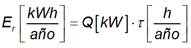 La energía recuperada en el año viene dada por el calor intercambiado por el tiempo de trabajo del equipo, ecuación (6).
