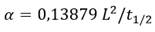 (1)Según especifica el fabricante del equipo la difusividad térmica es determinada a partir de la ecuación (2).