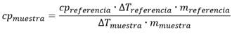 (3)Al ser iguales la energía de la muestra y la referencia se calculó el calor específico mediante la ecuación (4):