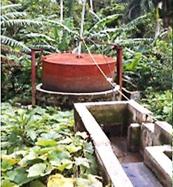 El biodigestor se localiza en la parte posterior del establo porcino de la comunidad y está funcionando con una producción de 3 m3 de biogás al día que pudiera abastecer aproximadamente a 6 vivienda, figura 1. Sin embargo, solo se abastece al círculo infantil de la localidad y una casa, por lo que se considera que la producción de biogás está siendo limitada y su capacidad, subutilizada.