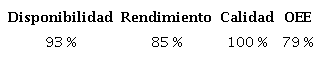 Se calcula al multiplicar tres factores: Disponibilidad, Rendimiento y Calidad, ecuación (1):