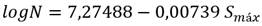 De acuerdo a lo planteado aquí la linealización de la dependencia entre N y Smax toma la forma de la ecuación (3):