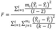 Ahora es necesario probar la certeza del uso del modelo lineal asumido en la ecuación (3). Si el ensayo es realizado de manera tal que sean observados más de un valor de Y para algunos valores de Xi (Xi son los niveles de carga e i ≥ 3) entonces es posible realizar una prueba estadística basada en la distribución F que aparece en la norma ASTM E 739 - 91. El logaritmo de N en la j-ésima probeta ensayada en el i-ésimo nivel de Xi es denotado para este análisis como Yij .