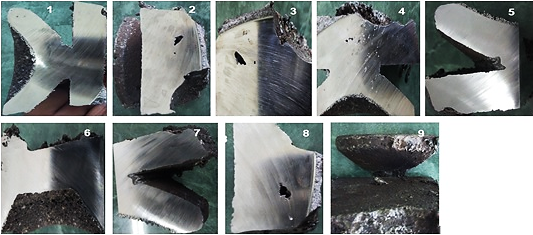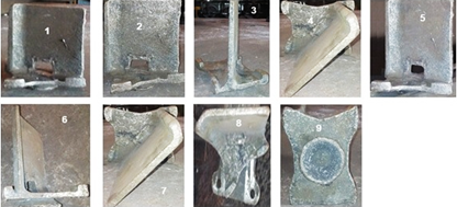 Para determinar los componentes metalúrgicos de la aleación HK 40 empleadas en dientes de barridos luego del proceso de fundición, fueron seleccionados nueve como se muestra en la figura 1, que fueron analizados en diferentes partes según su forma geométrica.