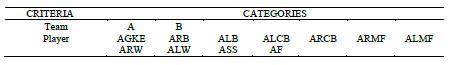 The instrument, prepared was taken of (Díaz-Díaz, Hernández-Moreno y Hernández-Flores, 2016). It was modified the number of criteria analyzed. In our case consists of two criteria (C) with their corresponding categories. C1: Team; C2: Players.