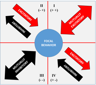 For the focal behaviour of ARMF, we observe mutual activation relationships (quadrant I) with the ALB, ARCB, ARB, ALW, ASS, AF and ARW players. In quadrant II, with activation of the conditioned category towards the focal, we find the ALCB and ALMF players. In the case of the AGKE player, the behaviour is mutually inhibitory. We can verify the ability to associate with different components of the ARMF player’s team. In terms of the position they occupy spatially within the team’s system of play, the players who occupy the midfield positions have to associate with all the players. In addition, they have the capacity of mutual activation, as observed in the previous graphs. Unlike the analysis of the game that they lost when playing at home, which was analyzed above, there is an improvement in the interaction between the team’s two midfielders, who are the most important in the retrospective plane.
