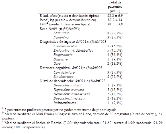Inferior izquierda: Peso (Kg). (n=9; dos pacientes no pudieron pesarse sin ayuda).