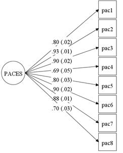 Olhando especificamente para os pesos fatoriais, foi possível observar que estes são elevados, sendo suportados pela literatura (Byrne, 2011; Kline, 2016), explicando mais que 25% de variância no fator latente.