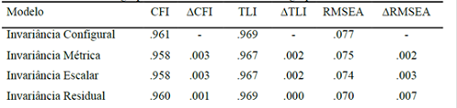 O primeiro passo consistiu na análise do modelo de medida nos diversos grupos. De acordo com os resultados, o modelo teve um ajustamento aceitável em todos os grupos, evidenciando propriedades psicométricas aceitáveis tal como proposto por vários autores (Byrne, 2011; Hair et al., 2019). Estes resultados são expectáveis, dado outros estudos terem aplicado a mesma escala em jovens (Motl et al., 2012), em adultos (Teques, Calmeiro, Silva, & Borrego, 2017) e em idosos (Mullen et al., 2011). Os resultados também confirmaram consistência interna, na medida em que os valores da fiabilidade compósita são superiores aos valores de corte propostos por . Nesse sentido, podemos afirmar que os oito itens medem o que é suposto medir, neste caso em concreto, a perceção de divertimento durante a prática de atividade física.