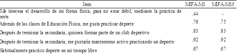 En conclusión, el análisis de las propiedades psicométricas del cuestionario MIFA-M ha mostrado que una estructura unifactorial es viable, adecuada e invariante entre varones y mujeres adolescentes mexicanos. Atendiendo a criterios estadísticos y sustantivos, la estructura unifactorial ha mostrado adecuados indicadores de ajuste, fiabilidad y validez.