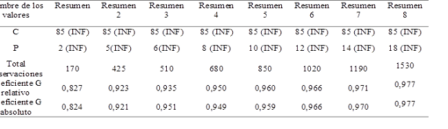 Para determinar la fiabilidad interobservador se estableció un diseño de dos facetas (C=O), como ya se ha comentado. Los resultados muestran que prácticamente toda la variabilidad se asocia a la faceta categorías (97,076%), siendo 0 para la faceta observadores y de 2,917% para la interacción de las facetas categorías/observadores. Los Coeficientes G relativo y G absoluto para esta estructura muestran un resultado de 0,985 lo cual se corresponde con unos resultados óptimos.