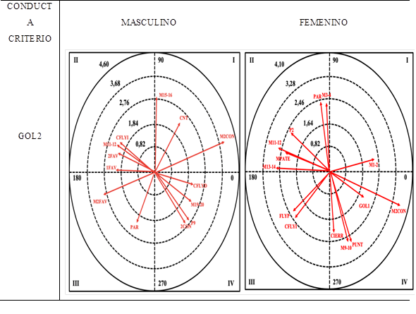 Seguidamente, en la figura 3 se puede observar la representación gráfica resultante del análisis de coordenadas polares para la conducta criterio GOL2.