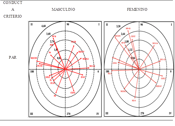 En la figura 4, se puede observar la representación gráfica resultante del análisis de coordenadas polares para la conducta criterio PAR.