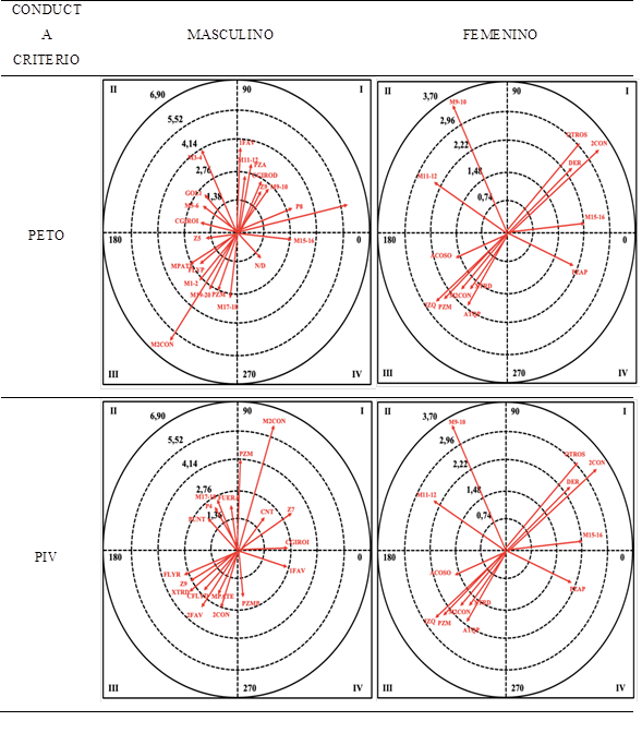 En la figura 5, se presenta la representación gráfica resultante del análisis de coordenadas polares para las conductas PETO y PIV.