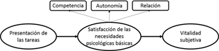 Tomando como base los postulados de la teoría de las necesidades psicológicas básicas (Deci y Ryan, 2000), en el presente estudio se puso a prueba un modelo en que se examinaron las interrelaciones entre la presentación de las tareas realizada por el profesor, la satisfacción de las necesidades psicológicas básicas y la vitalidad subjetiva percibida por sus estudiantes en el ámbito de la educación física.