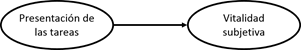 El objetivo principal de esta investigación fue estudiar, desde los planteamientos de la miniteoría de la BPNT (Deci y Ryan, 2002), las interrelaciones entre la presentación de las tareas (PT) por parte del profesor como factor social, las necesidades psicológicas básicas (NPB: autonomía, competencia y relación) como factores mediadores personales, y la vitalidad subjetiva (VS) en el contexto de la educación física. Todo esto, a través de la comprobación de un modelo teórico con la secuencia PT→NPB →VS (fig. 1), en el que se plantean las siguientes hipótesis: 1) la presentación de las tareas por parte del profesor será un predictor positivo de la satisfacción de las necesidades psicológicas básicas; 2) la satisfacción de NPB será un predictor positivo de la vitalidad subjetiva, y 3) la satisfacción de las NPB mediará la relación entre la presentación de las tareas por parte del profesor y la vitalidad subjetiva descrita por el alumno. Aunque esta relación ha sido estudiada en el contexto del deporte (e.g., Garza-Adame et al., 2017), la investigación es escasa en el contexto de la educación física, y la necesidad de su estudio ha sido puesta de manifiesto (e.g., Vlachopoulos, Katartzi y Kontou, 2011).
