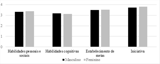 Na análise comparativa entre gêneros (Figura 1) e (Figura 2), sobre as dimensões dos dois questionários, foi observada diferença significativa (p<0.05) somente em Iniciativa (p=0.03). Este resultado sugere que, na generalidade, o fator gênero não influencia a qualidade da relação treinador-atleta (CART-Q), nem a percepção da experiência positiva dos jovens no esporte escolar extracurricular (YES-Y).