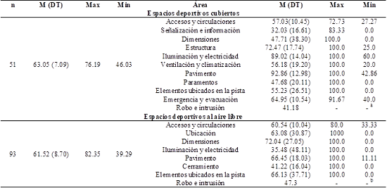 Finalmente, se analizaron un total de 144 espacios deportivos, de los cuales 51 eran cubiertos y 93 al aire libre.