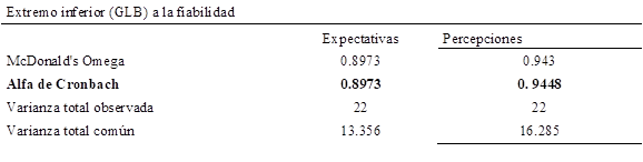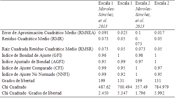Siguiendo los trabajos de Morales-Sánchez, Berrocal, Morquecho y Hernández-Mendo (2013) y Morales-Sánchez, Hernández-Mendo y Blanco (2009), los índices de ajuste estimados mediante AFM y AFC son adecuados y permiten postular que su estructura factorial se confirma, y las restricciones especificadas en el modelo son satisfactorias. Los resultados obtenidos, permiten afirmar que el cuestionario SERVQUAL posee propiedades psicométricas satisfactorias, tanto de fiabilidad como de consistencia interna (Morales-Sánchez, Hernández-Mendo y Blanco, 2009). En relación a los resultados de la estructura factorial del modelo referentes a los índices de error RMSEA y los índices de ajuste CFI y NNFI presentan un ajuste adecuado; en lo que respecta a la razón de chi cuadrado/ grados de libertad (gl) resulta satisfactoria, utilizando el método de máxima verosimilitud (ML). Así mismo los resultados de la fiabilidad compuesta de ambas escalas son satisfactorias.