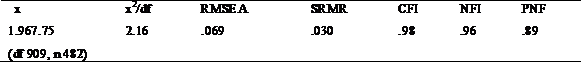 A CFA using LISREL 9.30 for students was conducted to further examine the structure of the 9-factor PACSQ. All of them are presented in table 2.