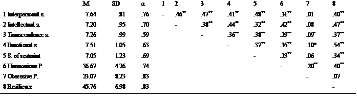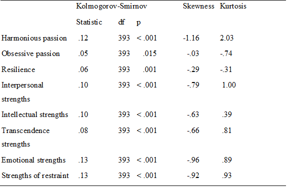 Results of the Kolmogorov-Smirnov test (Table 2) indicated a not normal distribution in all variables. Even if skewness and kurtosis were not large, we decided to compute the Spearman correlation coefficient.