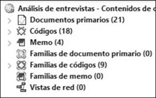 En la UH definitiva, los documentos primarios corresponden a cada una de las entrevistas realizadas. Las citas son las segmentaciones de los documentos primarios que fueron consideradas significativas y que pueden ser asociadas a un código. Los códigos son los elementos resultantes del análisis y se conformaron como un sistema mixto que combinó formatos de campo y un sistema de categorías (Anguera et al., 2011). Las familias de códigos son categorías centrales o de orden superior, que permiten agrupar códigos en base a un criterio determinado. Por su parte, los memos son todas aquellas anotaciones que los investigadores han considerado importante recoger o aclarar para la realización de todo el análisis (Pérez-López et al., 2015).