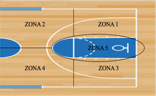 Para la concreción del criterio Zona de Finalización se ha dividido el campo de juego en 5 zonas distintas que van determinadas por la dirección del sentido del ataque, división que se muestra en la figura 1.