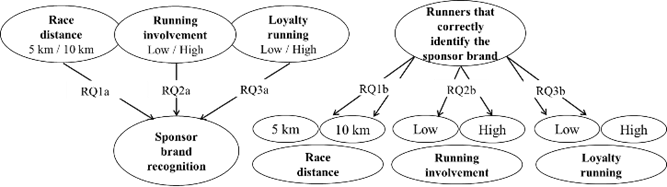 Based on previous literature and remaining gaps, the first set of research questions (RQ1a, RQ1b) was framed around the ability of runners to correctly recognise the brand of race sponsors, depending on the distance of the race, as shown in Figure 1: