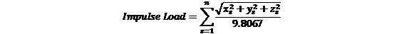 Impulse Load corresponds to a cumulative measurement of mechanical load, i.e., the sum of the areas under the accelerometer magnitude curve for all impulses, expressed as N∙s. The equation for Impulse Load is displayed below, where x=g forces in the medio-lateral (“side-to-side”) plane, y=g forces in the anterio-posterior (“forwards and backwards”) plane, and z=g forces forces in the vertical (“up and down”) plane (OmniSense Analysis Help, 2016). This variable only includes detected locomotor events (e.g., walking, running, bounding or jumping) and impacts. Mean Impulse Load was calculated for half (1st and 2nd) and total match-play.