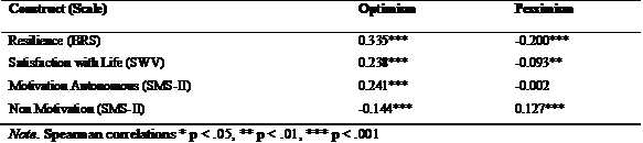 Keywords: optimism, pessimism, dimensionality, validation study.