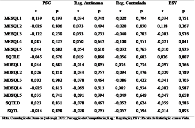 As variáveis categóricas foram representadas pela frequência absoluta e relativa, sendo representadas por média, desvio-padrão, mediana e intervalo interquartílico (mediana [p25; p75]). Foi realizado para as variáveis quantitativas, inicialmente, o teste de normalidade de Shapiro-Wilk. A correlação de Pearson para verificar o grau de relação entre as variáveis. Para comprovar o poder preditivo das variáveis foi realizada uma análise de regressão linear múltipla hierárquica.