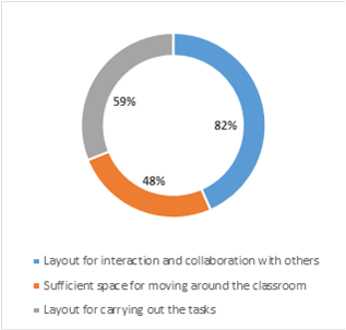 More than 80% of students considered the ILE layout was appropriate for interaction with others, while approximately half thought it has sufficient space for moving around and is an appropriate layout for the course tasks proposed. About these factors, one student said: “On the large tables we can do the tasks with more comfort and space” (S4).