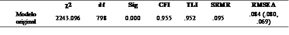 La tabla 4, muestra los resultados a partir del análisis factorial confirmatorio. Se presenta un adecuado ajuste en relación a los índices del modelo. En ese sentido, se confirma la estructura original de la prueba.