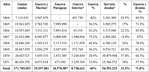 Es realmente notable la desenvoltura de algunos historiadores que han analizado la economía y fiscalidad argentinas durante la segunda mitad del siglo XIX respecto al conflicto de la Triple Alianza. Comprobar hasta qué punto casi ignoraron tomar verdaderamente en cuenta a esa guerra llama poderosamente la atención. Es cierto que el escenario de la guerra se desarrolló muy lejos del corazón de la región pampeana (pero, algo más de la mitad de las fuerzas de guerra fueron las de esa región, en especial, las de la ciudad y la provincia de Buenos Aires) y por lo tanto no afectó, sino parcialmente, a la economía pecuaria de la región, si bien allí la presión sobre la mano de obra potencial debe haber sido muy sensible.2 Pero, sobre todo, la guerra tuvo una gran influencia en acentuar la fragilidad de las finanzas públicas que llevaría al país a la grave crisis desatada como consecuencia del sacudón internacional iniciado en 1873, la “primera gran crisis internacional del capitalismo” según las recordadas palabras de Eric Hobsbawm.