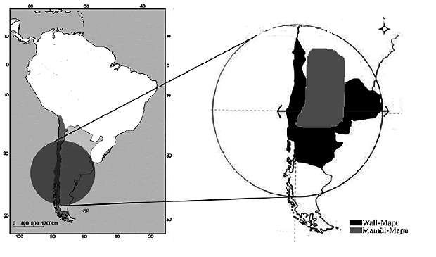 El Wall-Mapu (“tierra circundante”) es el territorio mapuche que se ha convertido en la actualidad en uno de los símbolos de lucha de este pueblo; concebido como la base de la existencia y cultura mapuche (Radovich, 2003). Este amplio espacio está localizado en el centro sur del territorio chileno y argentino, separado por la cordillera de los Andes, y se extiende hasta la actual zona bonaerense. Al oeste del macizo montañoso, de acuerdo con las poblaciones mapuches, se encuentra el Ngulu-Mapu, y al este, el Puel-Mapu. En cuanto a la territorialidad rankulche, existe consenso entre los investigadores 4 Universidad Nacional de La Pampa. Facultad de Ciencias Humanas. Instituto de Estudios Socio-Históricos M. Gabriela Musaubach, Ayelen Di Biase y Mónica Berón de la región acerca de que fueron los moradores de la pampa central desde fines del siglo XVIII en adelante (Roulet, 2002; Hux, 2003; Villar y Jiménez, 2003; Lazzari, 2012).