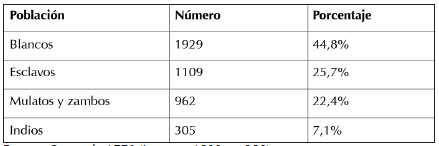 El aumento demográfico verificado se sostuvo también, durante el período, por el crecido número de negros esclavos, afrodescendientes libres y migrantes indígenas que, de forma conjunta, representaron el 55,2% de la población urbana de acuerdo con el censo de 1776 (cuadro 1).