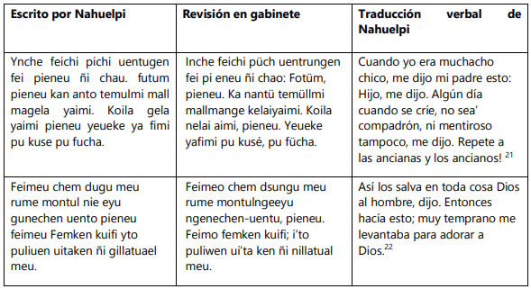 La descripción de una serie típica de actividades para la producción de ese archivo permite comenzar a recuperar la complejidad de la mediación lingüístico-cultural realizada por Nahuelpi, la variedad de operaciones implicadas y el amplio grado de autogestión exhibido en ellas: