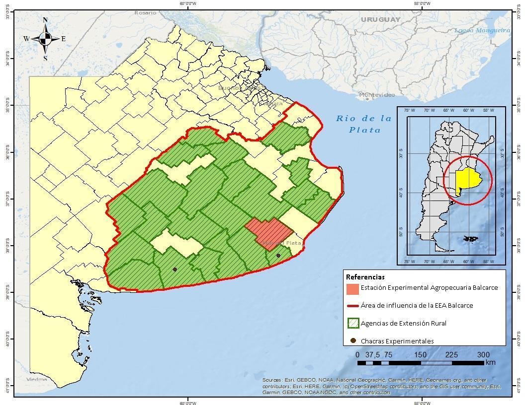Para el período en estudio, el área de influencia de la EEAB comprendía gran parte de la provincia de Buenos Aires,[10] y abarcaba, además del denominado sudeste, el área de la “Cuenca del Salado”, con Agencias de Extensión Rural[11] situadas en muchos de los partidos que la conforman. A su vez, dentro de esta zona de influencia, se encontraban la Chacra Experimental de Miramar[12] y la Chacra Experimental Barrow –integrada al INTA desde 1962–, dependientes del Ministerio de Asuntos Agrarios de la Provincia de Buenos Aires. A partir del advenimiento de la democracia, en 1983, la estructura del INTA comienza un proceso de descentralización y de creación de quince centros regionales en el año 1986. Uno de ellos tendrá sede en la ciudad de Balcarce, como Centro Regional Buenos Aires Sur (INTA, 2017).